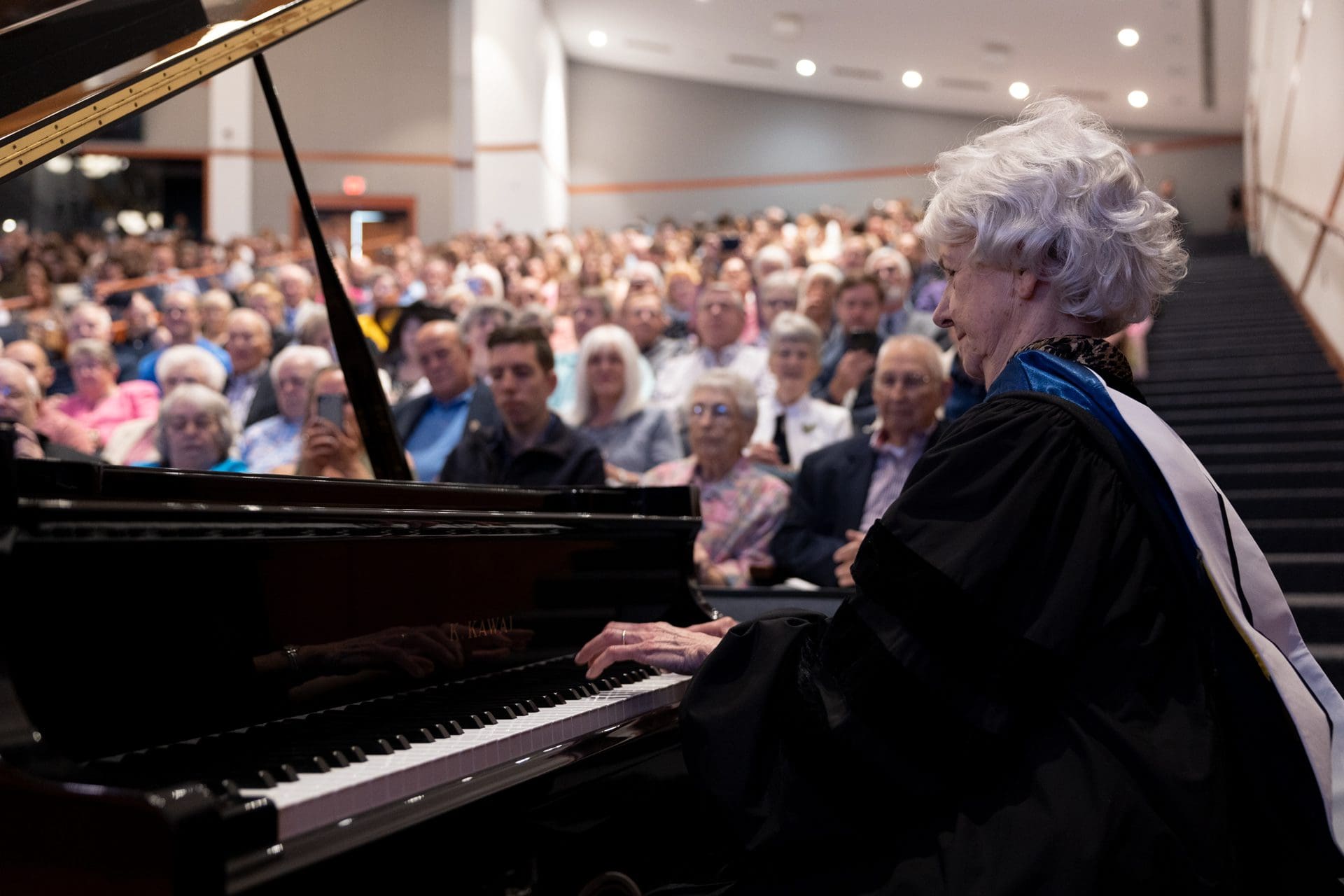 After graduating with her associate’s degree, Naomi would go on to achieve a bachelor’s and master’s degree in music education from the University of Tulsa. She formulated connections with The Gideons International and taught music—at the university level at Central Pilgrim College and Bartlesville Wesleyan College, and also to countless students as a private piano teacher, a role which continues to this day. Since 2002, she has served on the OKWU Board of Trustees, though the position is presently in Emeritus status.